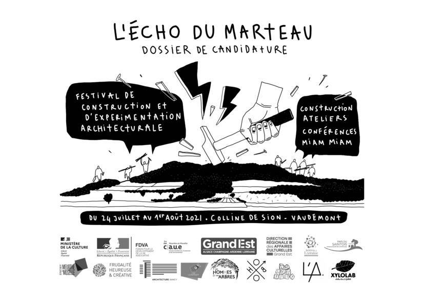 L’Écho du Marteau est un festival de construction et d’expérimentation architecturale se déroulant sur la colline de Sion-Vaudémont en Meurthe-et-Moselle du 24 juillet au 1er aout 2021. Il est organisé par des jeunes architectes diplômés de l’ENSA de Nancy, le Collectif Hobo, commissaire de la Folle journée de l’architecture en 2018 et soutenu par la DRAC Grand Est. Le but est de réaliser sept micro-architectures proposant une expérience unique sur sept sites différents sur la célèbre colline. Le pari est de réussir à concevoir, fabriquer et implanter ces constructions à la main sans outillage électrique. Pour cette première édition, le festival l’Écho du Marteau propose un large panel d’activités : workshop avec des étudiants de l’école d’architecture de Nancy, appels à projet, conférences et tables rondes. Pendant une semaine, il va favoriser les échanges, les rencontres, les découvertes, les réflexions collectives et les partages de nombreux savoir-faire. Les thématiques relatives à la construction, le paysage, les matériaux, l’environnement, l’architecture, l’habiter et bien d’autres sont abordées au cours des différentes activités. Les micro-architectures vont rester sur place pendant un an.