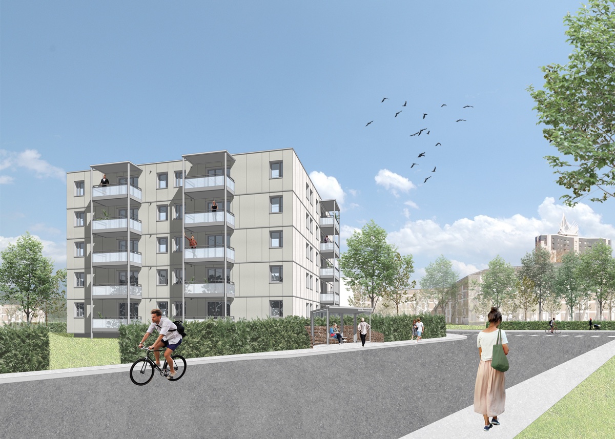 Plurial Novilia, filiale d’Action Logement, expérimente actuellement l’industrialisation et la massification des façades isolantes en bois dans le cadre de la réhabilitation de 127 logements à Reims. Le procédé s’appuie sur la pose en extérieur de la solution Panobloc© de la société Techniwood, une solution de façade en bois de 200mm d’épaisseur isolée avec de la laine de roche, préfabriquée en usine puis assemblée sur site. Outre son excellente performance énergétique, ce treillis structurel en bois composé d’un empilage de plis croisés à 90%, décalés et collés entre eux, permet de réduire de manière drastique le temps de travaux, les délais et les nuisances pour les locataires lors de la mise en œuvre. Cette solution bas carbone s’appuie sur un matériau bois biosourcé de fabrication française, sa mise en œuvre ne nécessite que peu d’intervenants et peu d’équipements, limitant ainsi les nuisances et les déchets. Elle offrira un gain de 20 à 30% sur la performance thermique, tout en supprimant les ponts thermiques et améliorant l’acoustique et l’étanchéité aux éléments naturels (air, eau, vent). Au total, les logements qui présentent actuellement une étiquette énergétique de E ou F selon les lots passeront en moyenne à une étiquette C, pour une réduction des consommations estimée à environ 40% en moyenne.