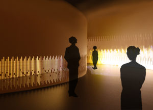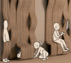 À l’ère du numérique, les formes artistiques émergentes témoignent d’une porosité entre les médiums et se révèlent exigeantes en termes de scénographie d’exposition. Ainsi, le bois, matériau ancestral mais surtout matériau d’avenir, nous a semblé être le candidat idéal pour devenir un élément identitaire, distinctif d’une forme d’art dont l’exposition complexe est trop souvent négligée : les arts vidéo